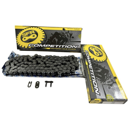 La cadena SFR 420 con 180 eslabones está diseñada para aplicaciones que requieren mayor longitud, como proyectos de modificación, motocicletas personalizadas o ciertas transmisiones extendidas. Gracias a su fabricación de alta calidad y estructura reforzada, ofrece una operación suave, durabilidad superior y máxima seguridad en todo tipo de terrenos.